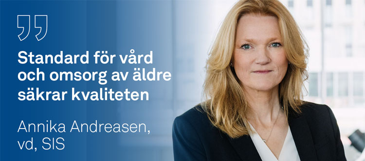 En debattartikel av SIS VD, Annika Andreasen, publicerad i Dagens Samhälle beskriver hur äldre personer drabbats av pandemin och lyfter ”äldrestandarden” SS 872500.